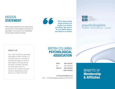 As a part of marketing collateral - brochures created for the members (Registered Psychologists) and for the general public.